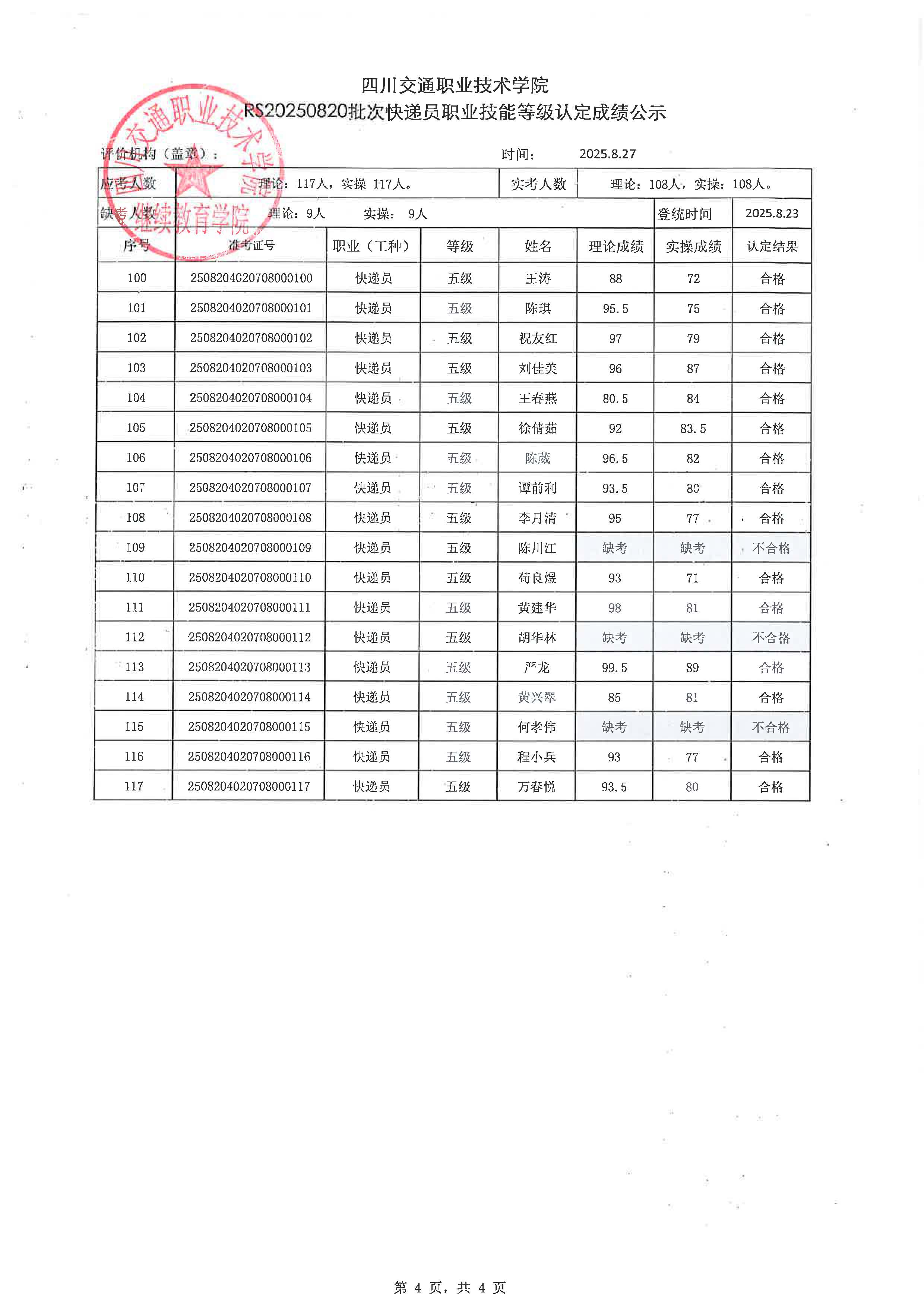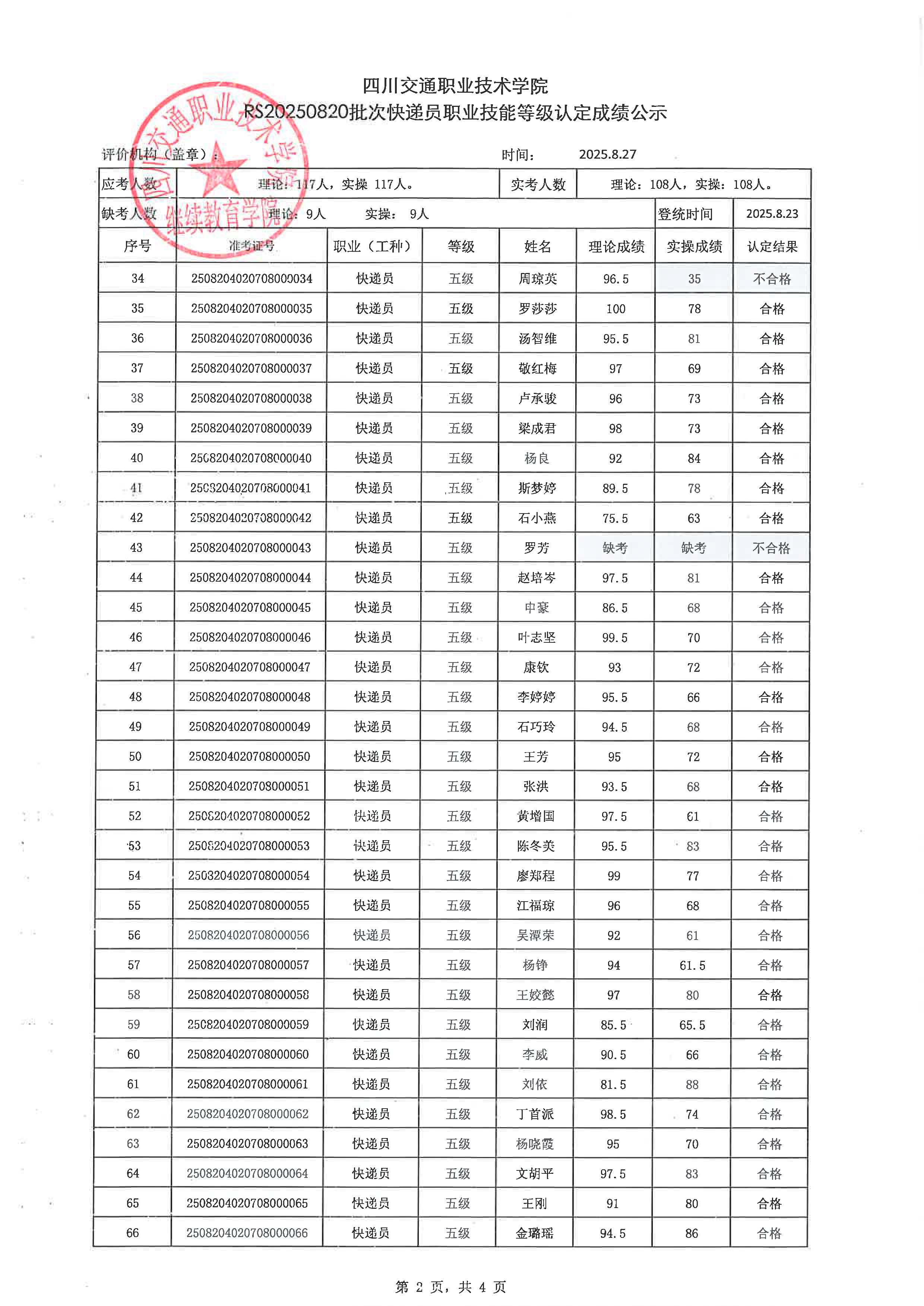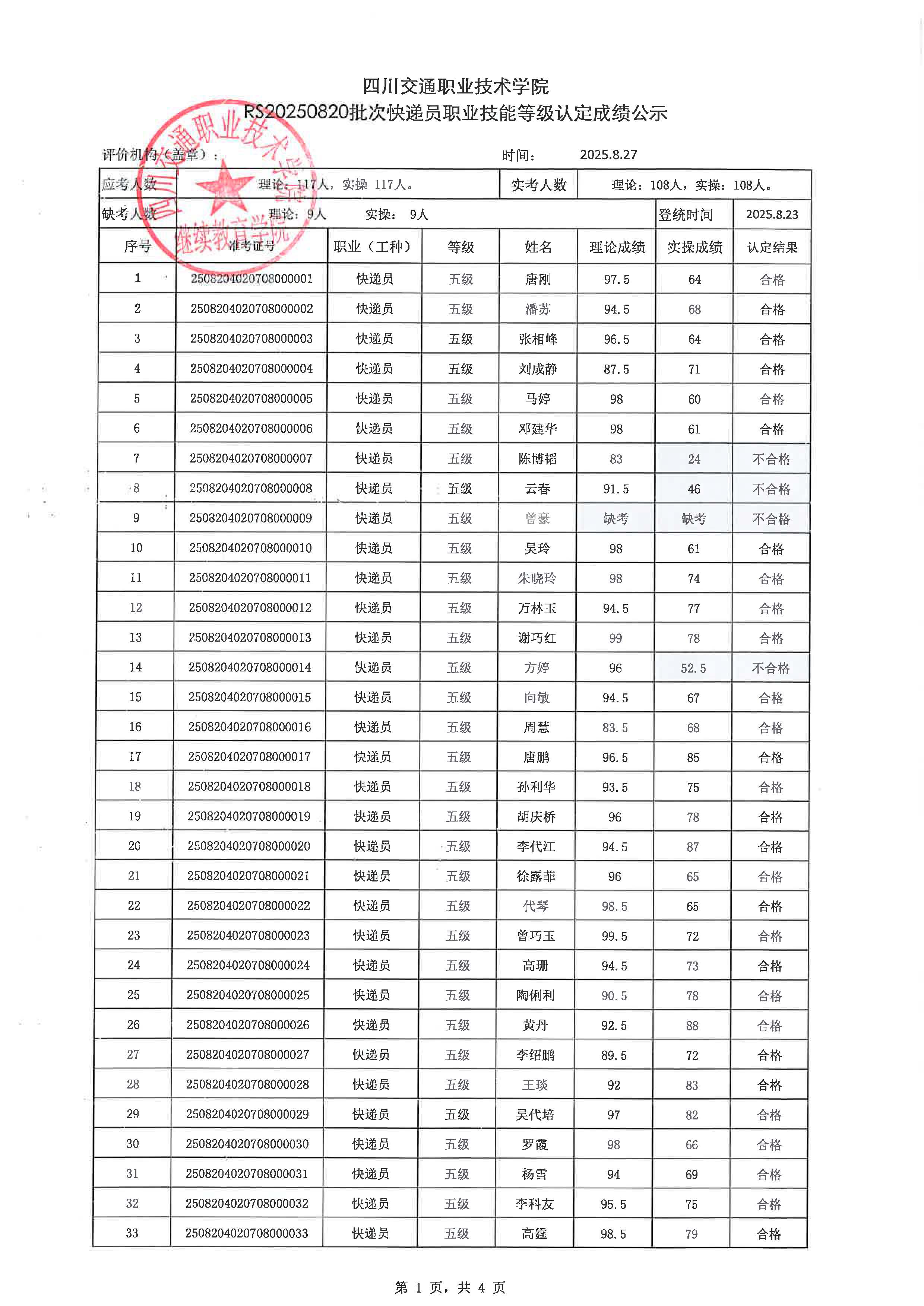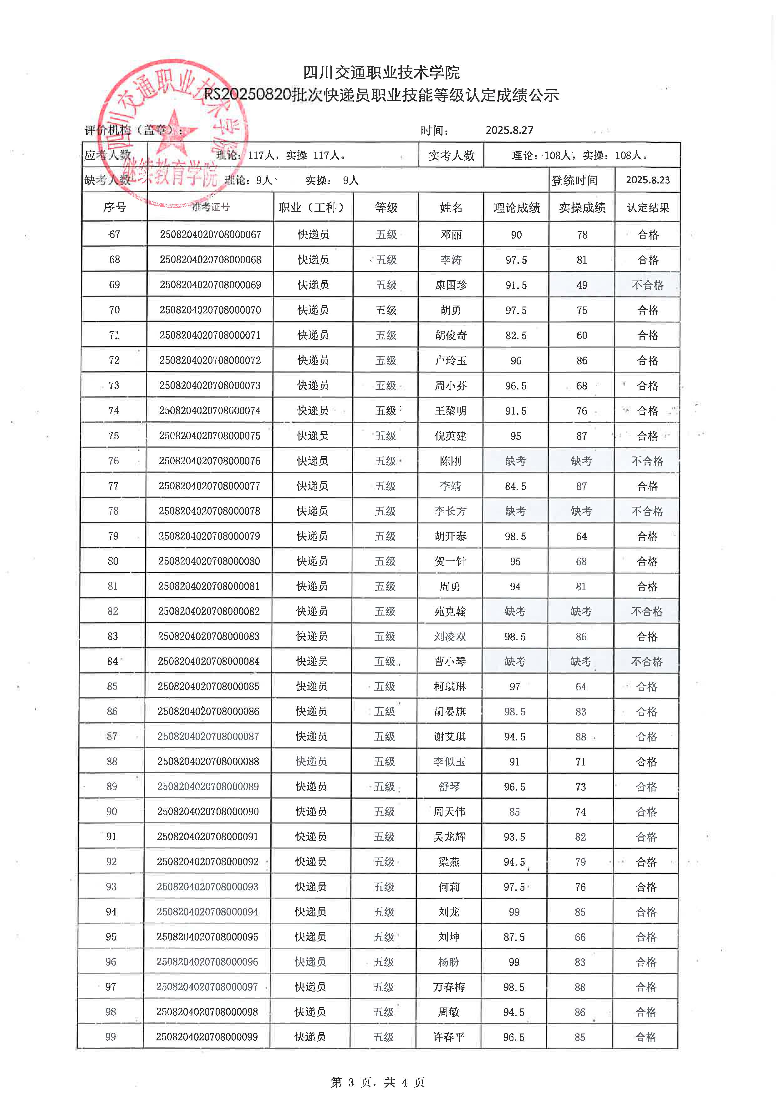 【上一篇】: RS20250821批次快递员职业技能等级认定成绩公示