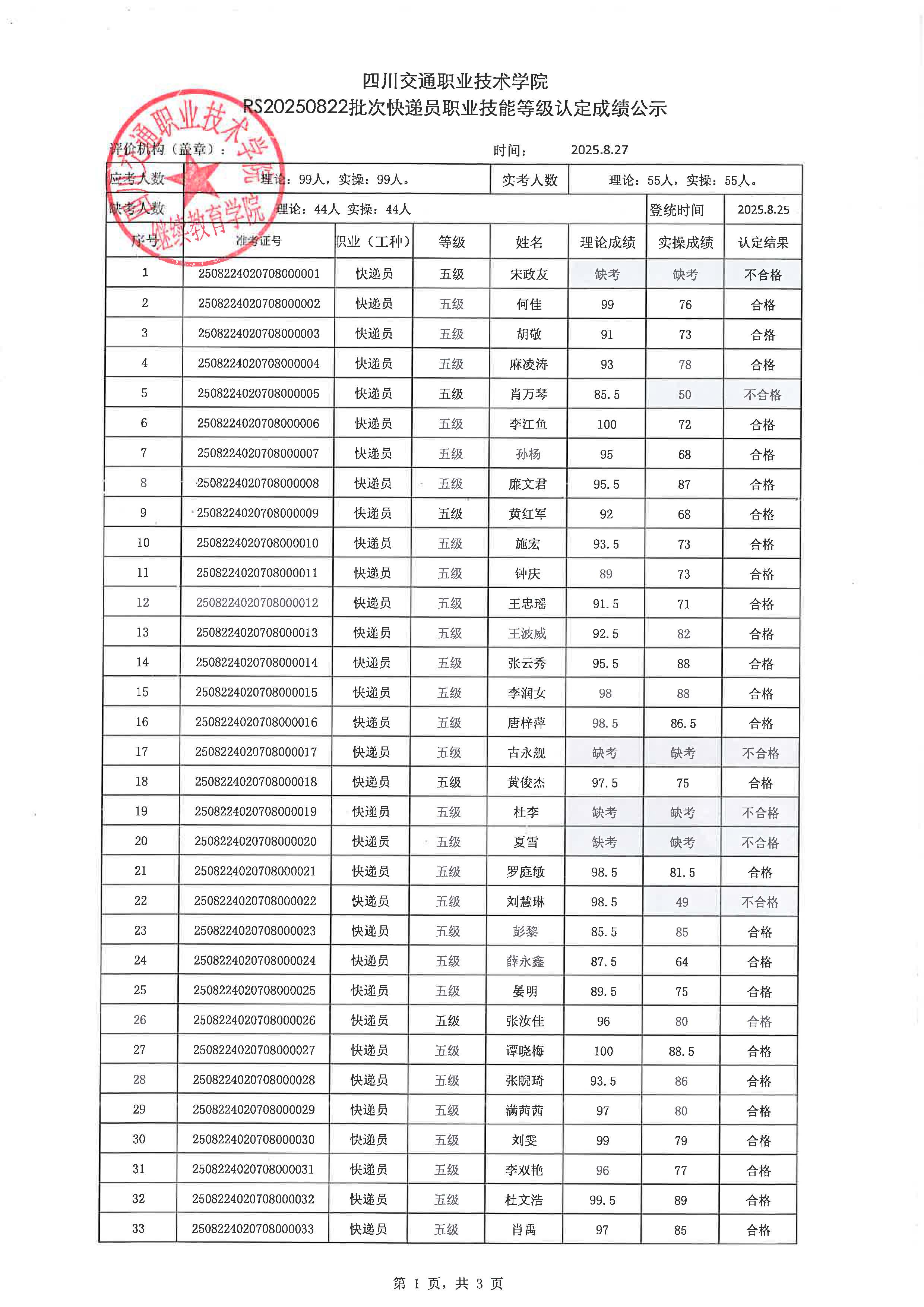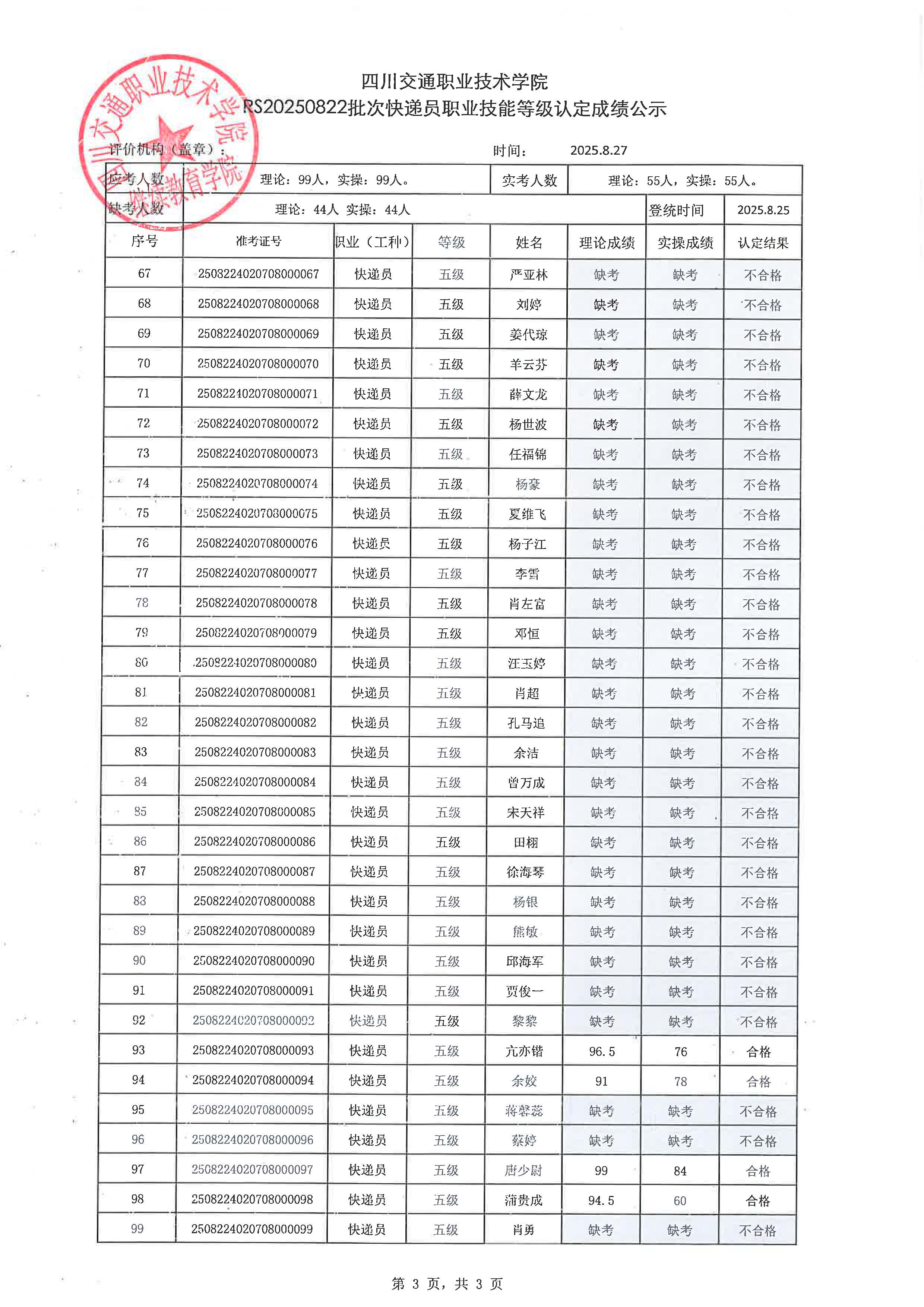 【下一篇】: RS20250821批次快递员职业技能等级认定成绩公示
