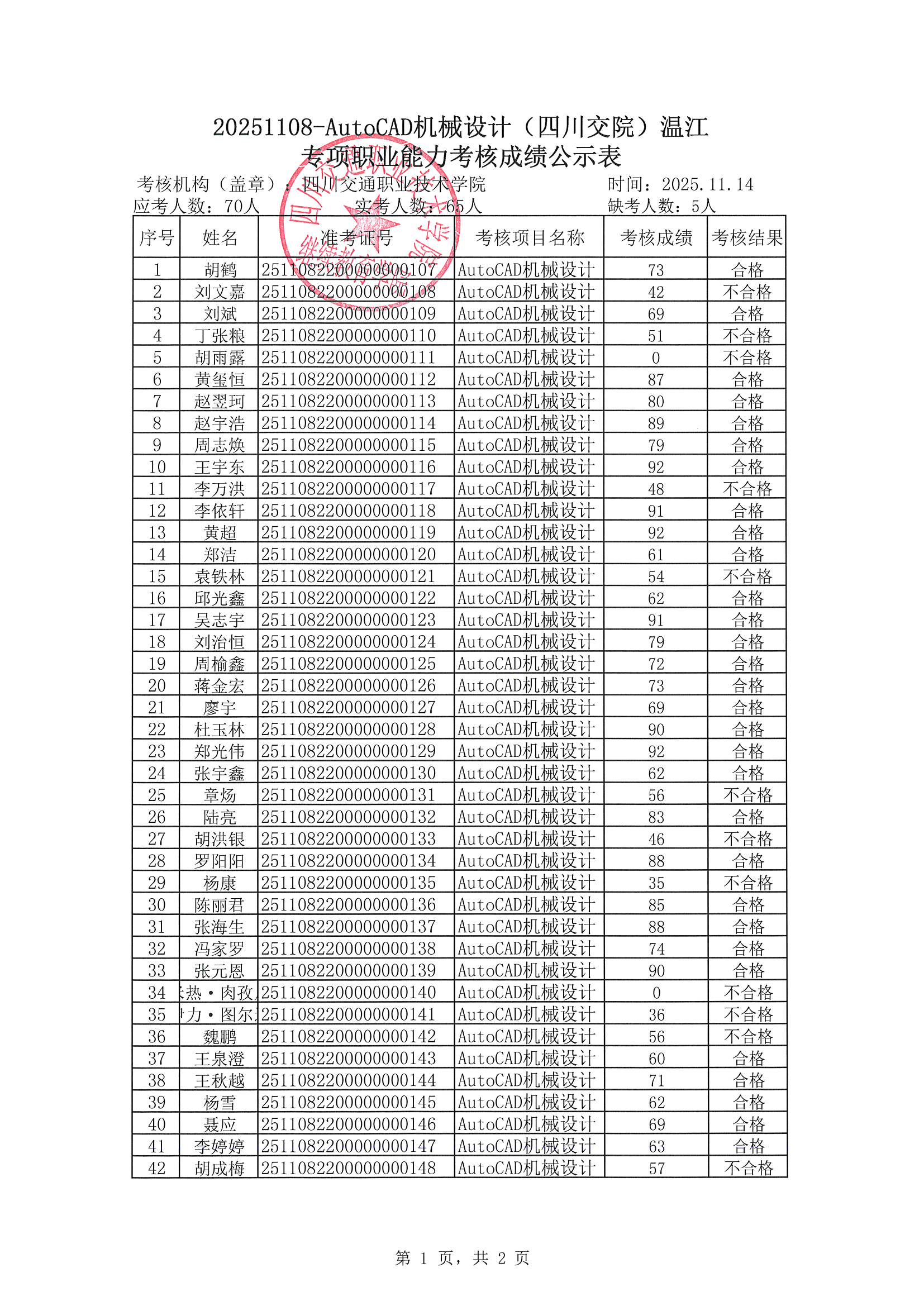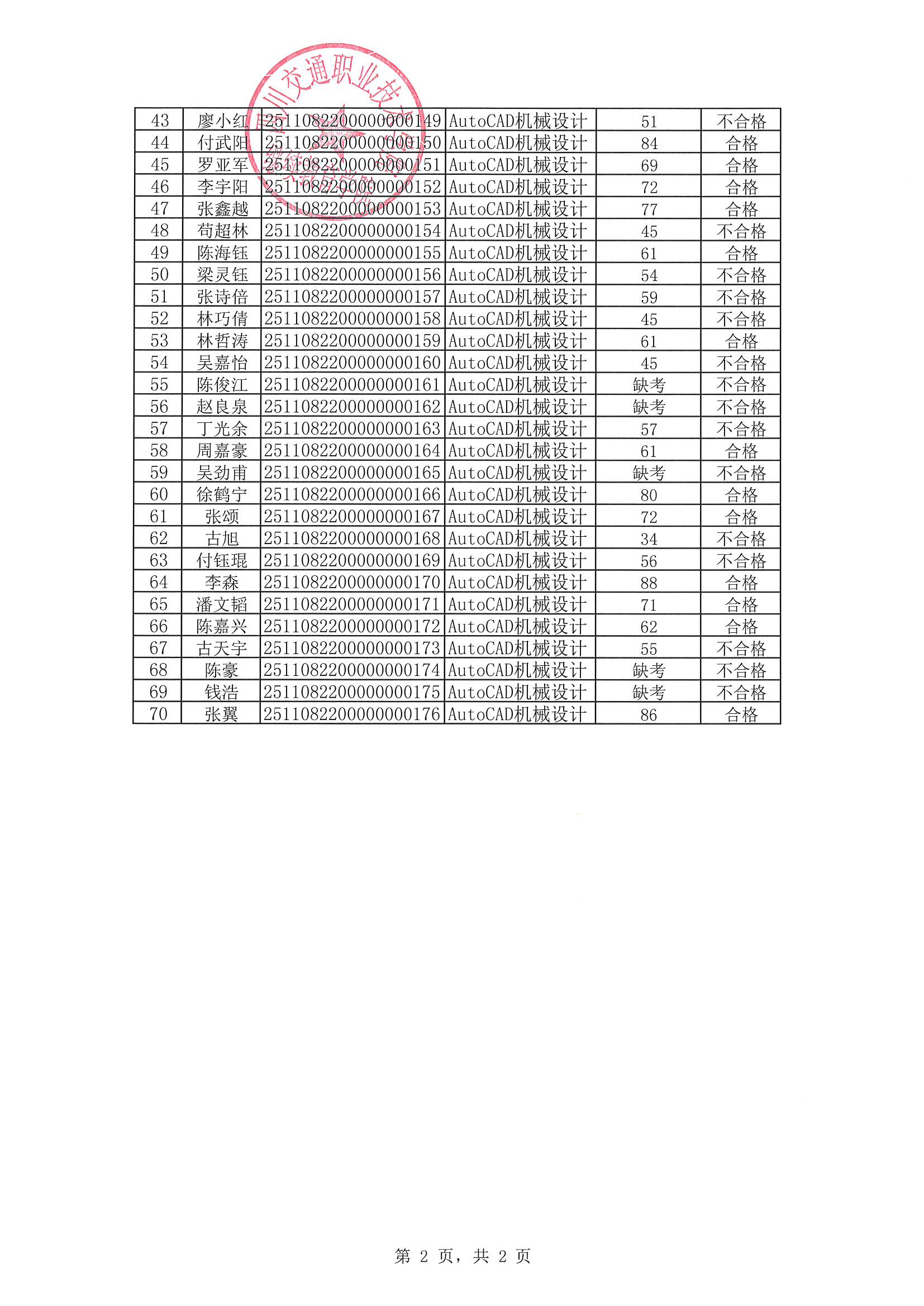 20251108-AutoCAD机械设计专项能力考核成绩公示